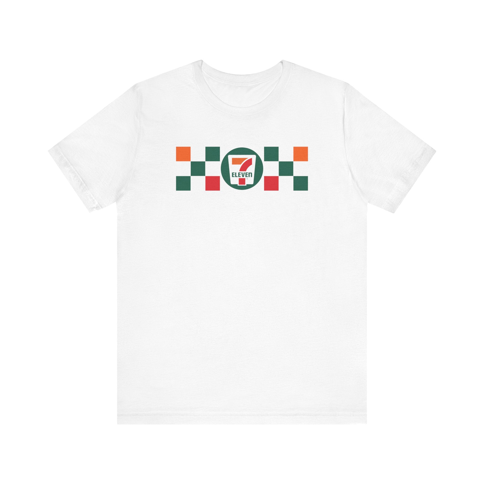 Classic 7-Eleven checkered tee with a classic fit, perfect for casual settings!