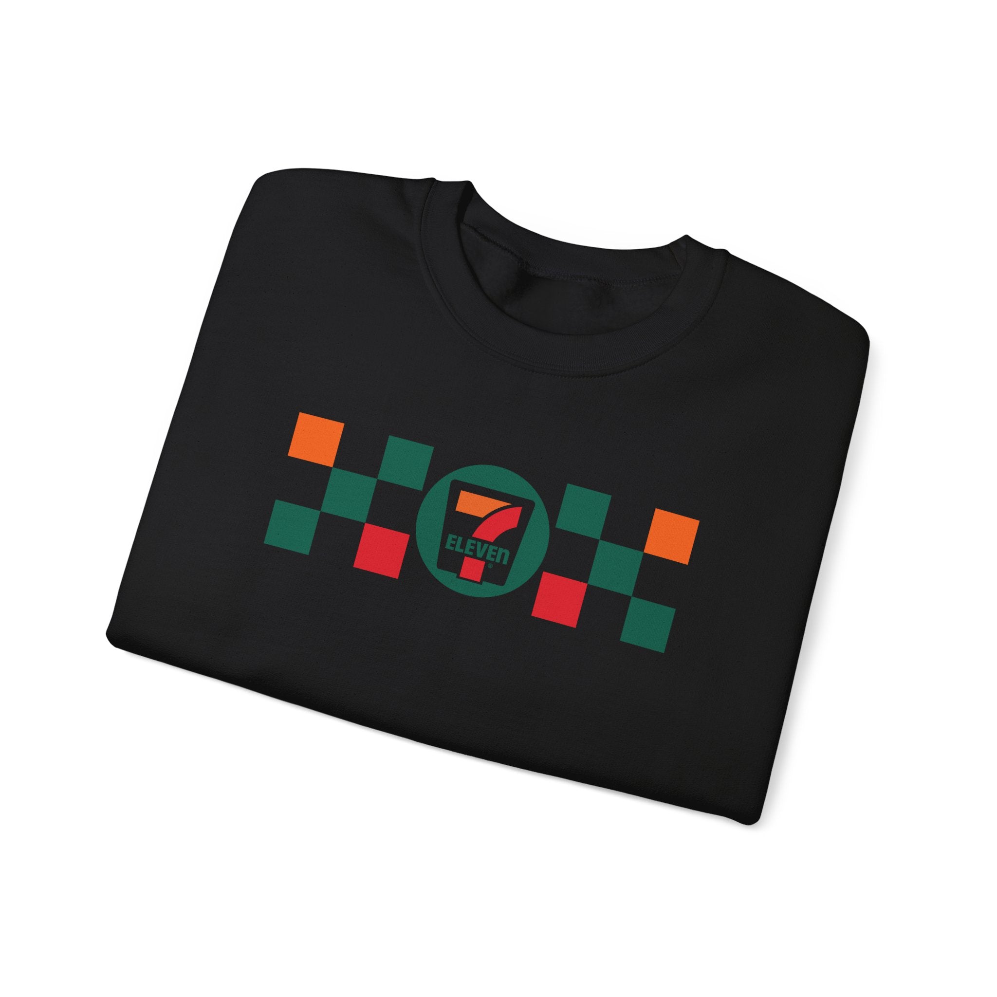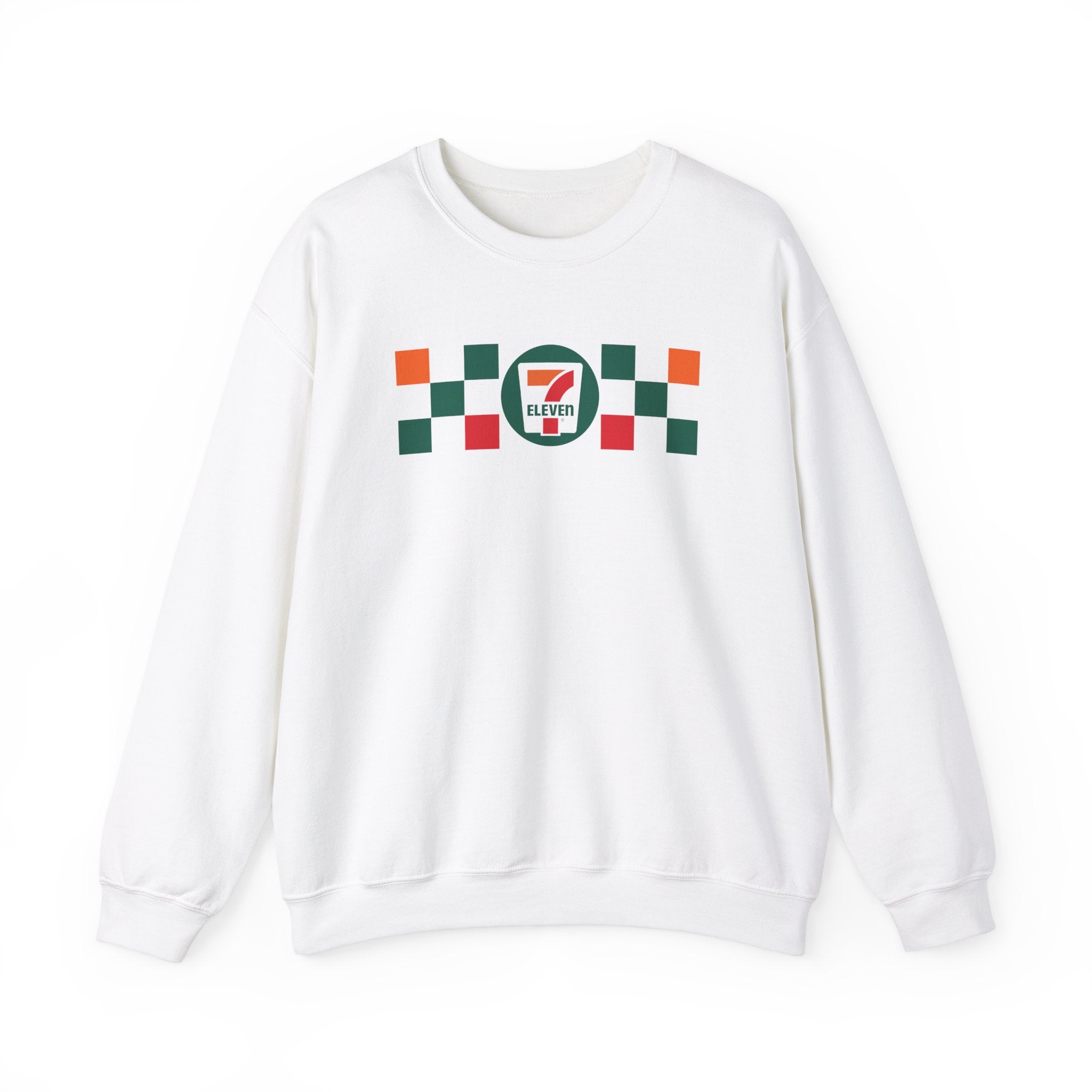 This crewneck sweatshirt features a classic checkered 7-ELeven design, perfect for the winter season. Made with a cozy medium-heavy fabric, this crerwneck is the perfect extra layer for staying just the right amount of warm and cozy.